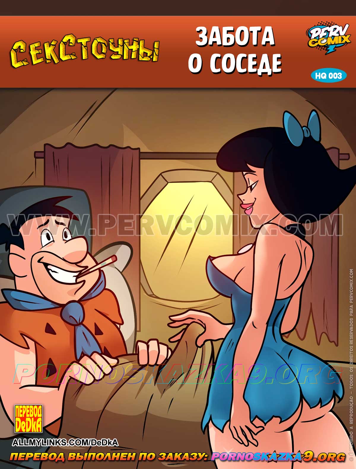 Читать далее 02 Окт 2025 17454 0Порно комикс «Секстоуны. Часть 4. Подглядывающий БамБам.» Флинстоуны.